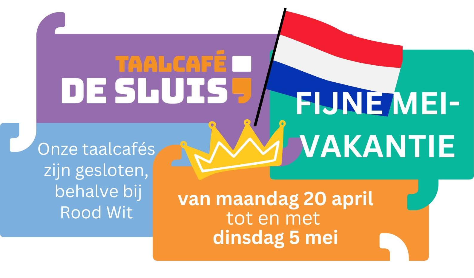 Onze reguliere taalcafés zijn gesloten van maandag 20 april tot en met dinsdag 5 mei. Hiermee volgen we de schoolvakanties in de regio. Ons taalcafé bij sportvereniging Rood Wit is wel geopend, en is bedoeld voor bewoners van de AZC’s.
